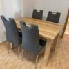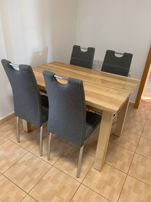 Tento jídelní stůl je vyroben z jasanového dřeva a má moderní a přirozený vzhled. Jeho jednoduchý design s čistými liniemi se skvěle hodí do jakéhokoliv interiéru. Robustní konstrukce zaručuje stabilitu a dlouhou životnost. Tento set je ideální pro rodinné večeře nebo společenská posezení. Stůl je natřen kvalitním olejem od značky rubio monocoat, který zaručí krásný vzhled a funkčnost po mnoho let.